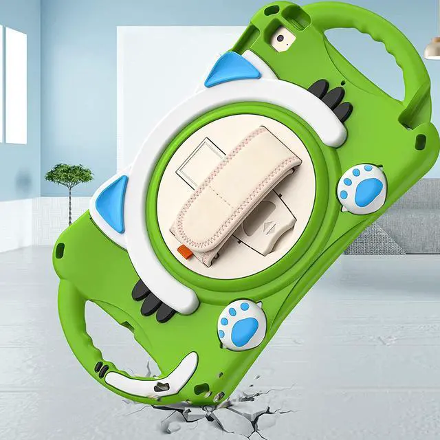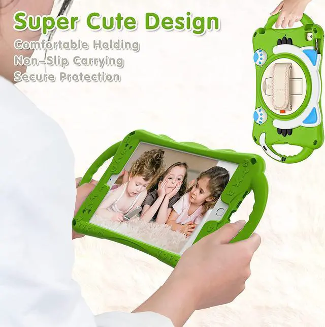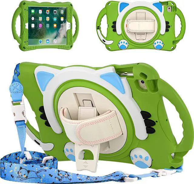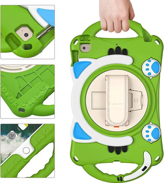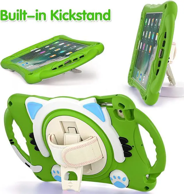 iPad Mini 1 2 3 4 5 Case, Shockproof Heavy Duty Cover Hand Strap Kickstand Carrying Shoulder Strap Sling for Apple iPad Mini 1st 2nd 3rd 4th 5th Gen [ Cat Shield-Frog Green]