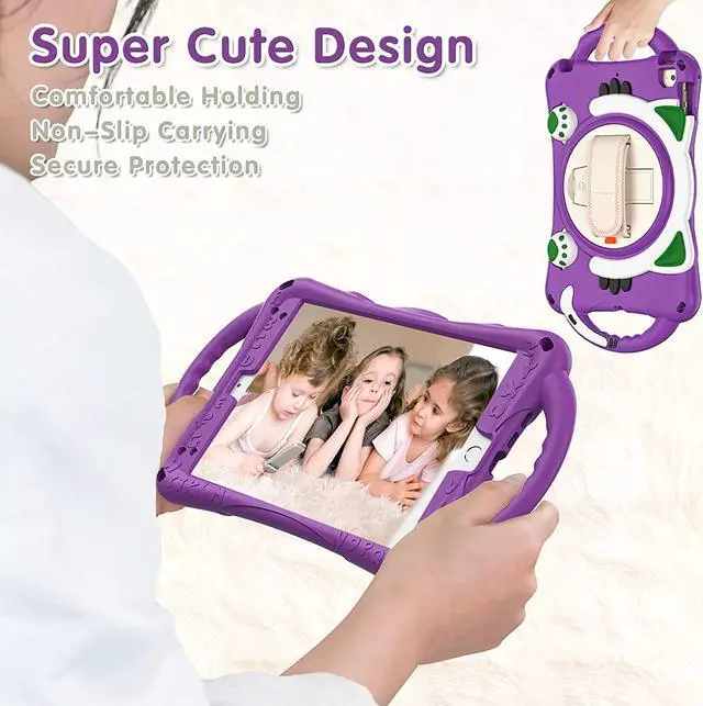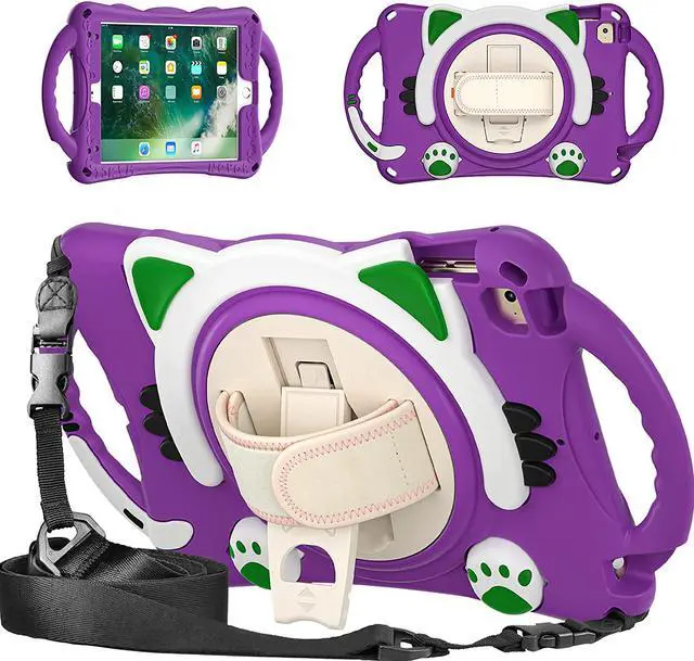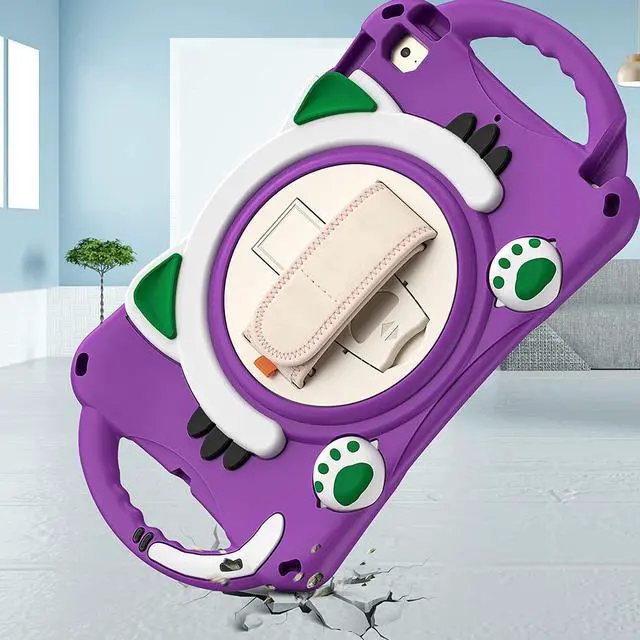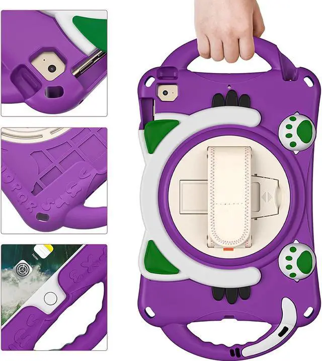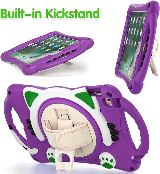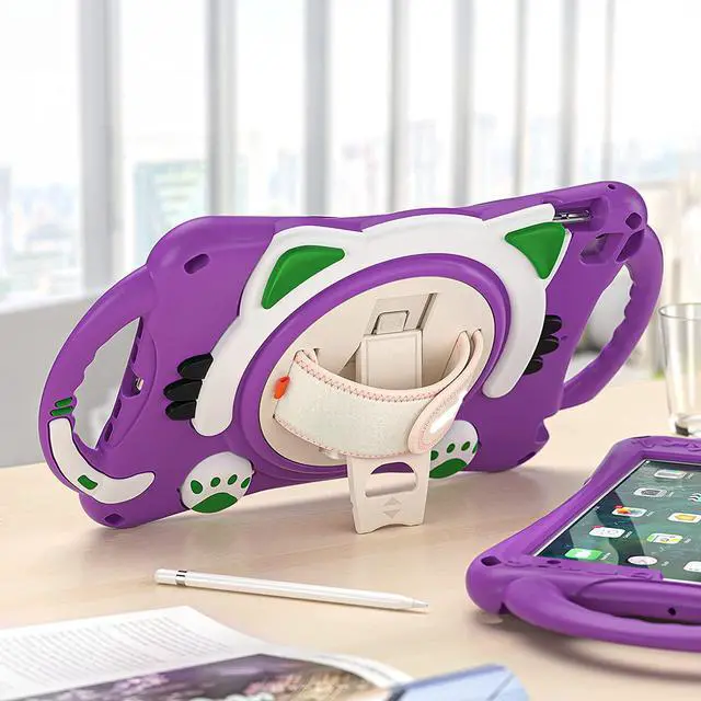 iPad Mini 1 2 3 4 5 Case, Shockproof Heavy Duty Cover Hand Strap Kickstand Carrying Shoulder Strap Sling for Apple iPad Mini 1st 2nd 3rd 4th 5th Gen [ Cat Shield-Purple]