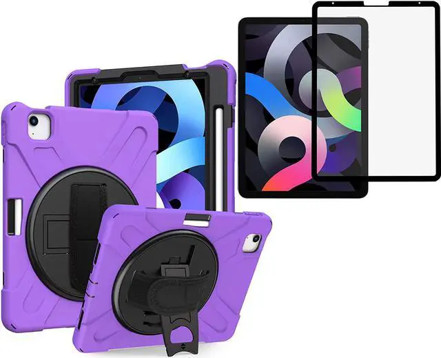 Shockproof Case Full-Body Heavy Duty Cover Stand with Shatterproof Ceramic Screen Protector for Apple iPad Air 4 10.9 2020 (Purple)
