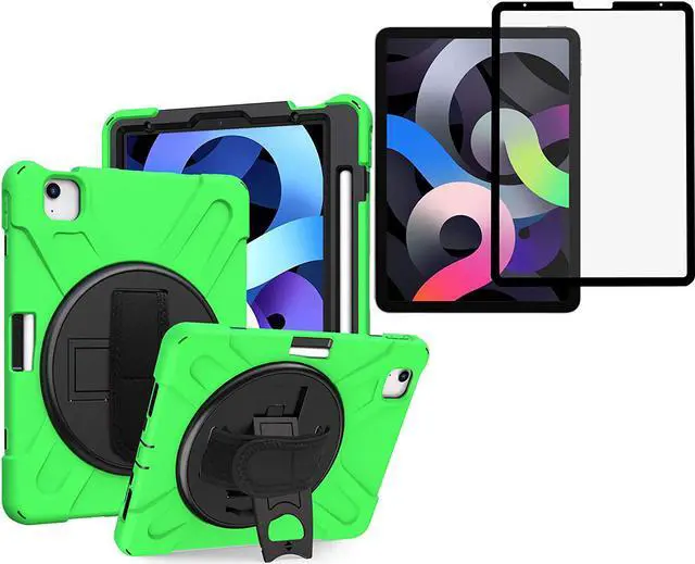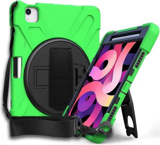 • HEAVY DUTY SHIELD CASE COVER - Designed to fit the Apple iPad Air 4th Generation. Specific cut-outs for the iPad Air 10.9 4th Gen's charging ports, front and back camera, home button, earphone jack, and volume/power controls. This case gives you total access to your tablets features and functions such as capturing photos/videos, syncing or charging without having to remove the case. Built-in hand strap, kickstand, and includes carrying shoulder strap sling.