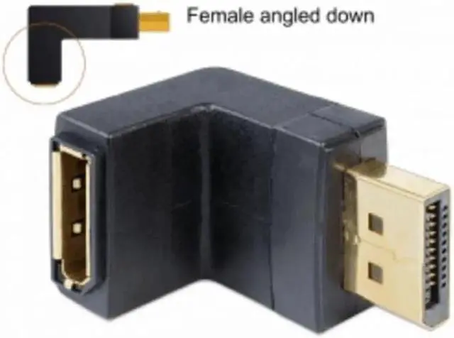 This Displayport adapter enables you to lead the female port of your Displayport devices, e. g. flat screen etc. 90 down.