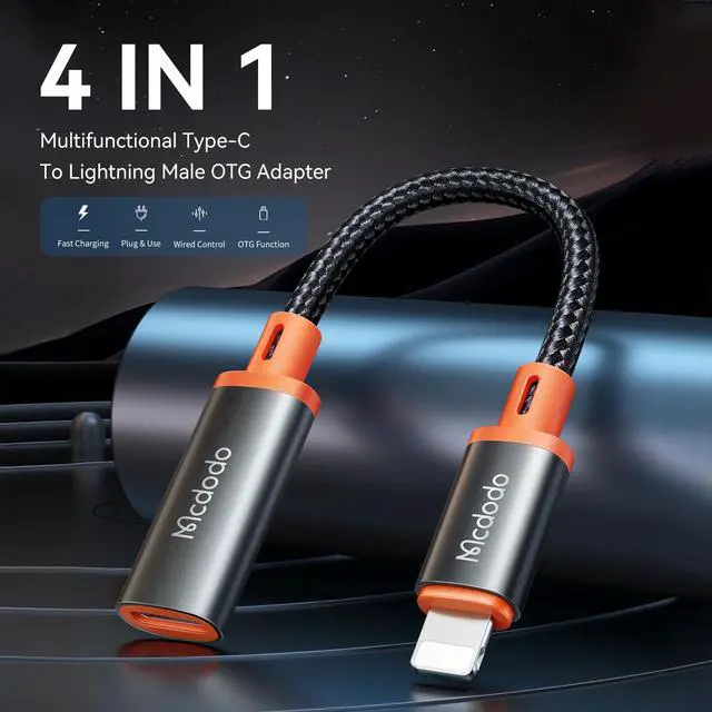 4-in-1 Lightning Audio AdapterThis USBC to Lightning adapter supports fast charging and OTG function. And it can be connected to headphones and other devices to use audio function. (Please note that data transmission cannot be carried out over the data line, only through the USB flash drive for direct transmission)