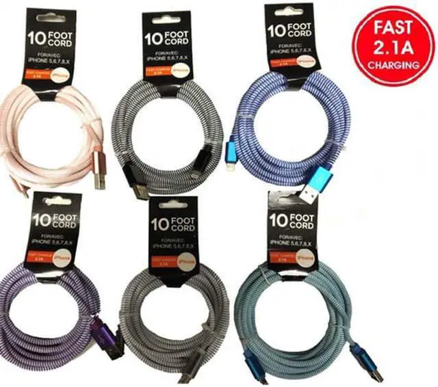 PDI-485 - USB CABLE A MALE TO C MALE 10FT 2.1A ASSORTED COLORS...