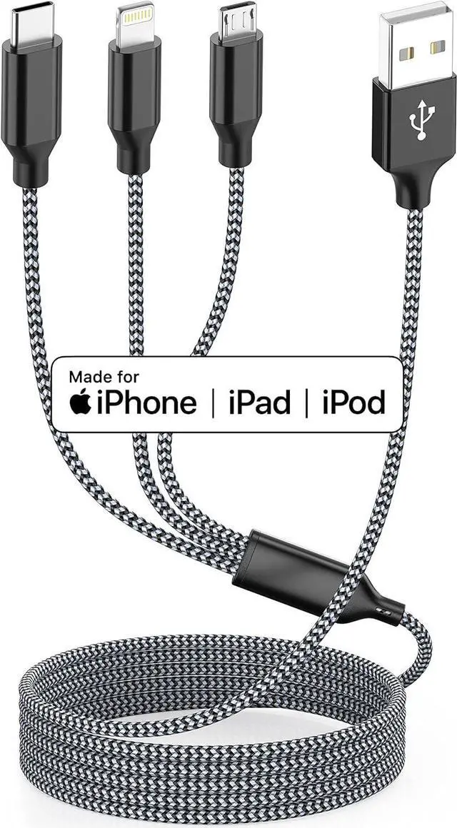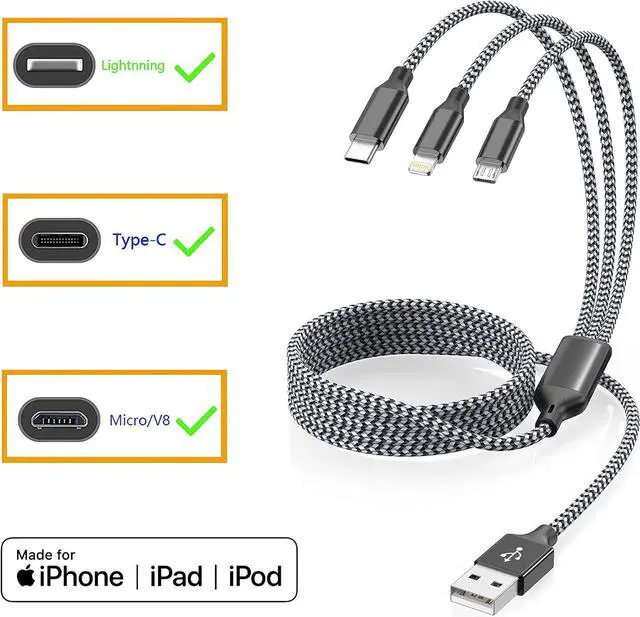 Charging Cable: Safe is above all! This multi charging cord delivers stable voltage and current protection ensures your devices are charged safely at maximum speed. Plus the iPhone charger cord also supports data transmission and the speed is up to 480 Mbps that allows you to transfer files in seconds.? 3in 1