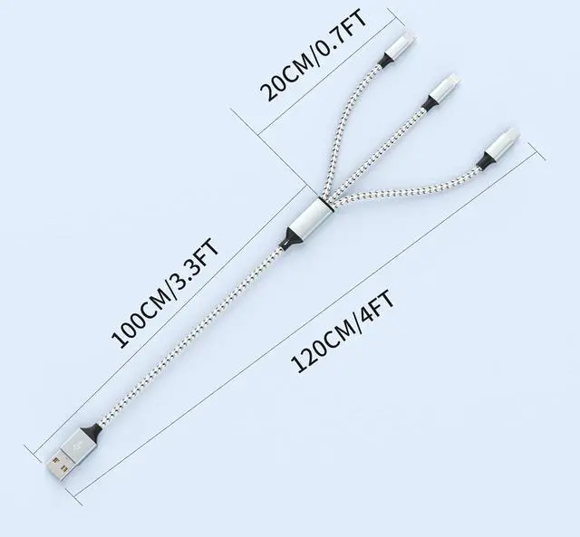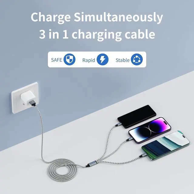 Charging Cable: Fast USB charging cable with lightning USB/Micro-USB/Type-C connector. Support charging 3 different models of cell phones at the same time convenient for you to share with friends or family.?
