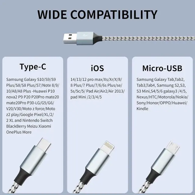 Flexible and Durable: Made of nylon braided cable and aluminum alloy providing high quality and durable flexibility to prevent breakage or damage.?