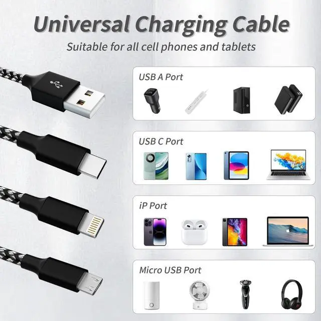Perfect Length: 2Pack 4ft multi usb cable enable you to charge your phone at ease. It's perfect for you to charge your phone when laying on sofa bed or sitting in the backseat of the car and so on! Bring one multi charger cable meets all your demand.