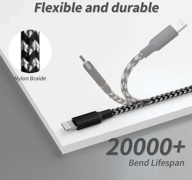 DURABLE MATERIALS: Powerful military fiber the most flexible strongest and most durable material increases tension by 200%. Special strain relief design withstands 10 000+ bending tests. The high-quality aluminum housing makes the cable more durable and resistant to heat and corrosion. Ensure a longer service life.