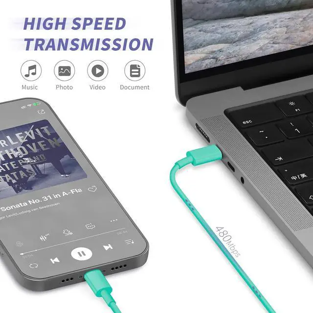 MFi Certified: Made with original Chip the USB C to Lightning cord full support with iOS versions and all future updates; They are of high quality pull-resistance fast charging and 480Mbps high transmission speed certification ensures complete charge and sync compatibility with your iPhone/iPad devices.