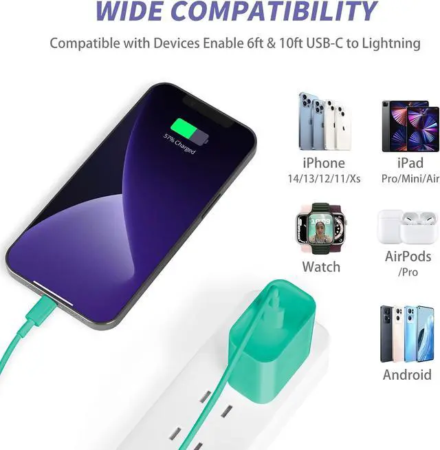 Universal Compatibility: 20W PD adapter wall plug to fast charge for iPhone 14/14 Plus/14 Pro/14 Pro Max/13/13 Mini/13 Pro/13 Pro Max/12/12Pro/12 Pro Max/12 Mini/11/11 Pro/11 Pro Max/XS Max/XS/X/XR/8 Plus/8 iPad Pro/ iPad Air/ iPad; Standrad Charging Speed works with iPhone 7/7 Plus/6s/6s Plus/6/6 Plus/SE/5s/5/5c.