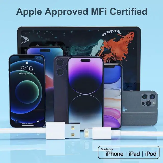 New & MFi-certified Chipset: This iPhone charging cable uses 's original C89 smart chip to recognize and connect to your devices immediately. MFi-certified cables provide a safe and stable charging solution for your devices.