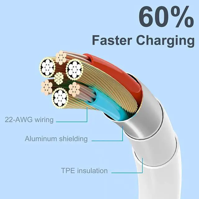 Charging Speed: Wide-diameter wires and reduced cord resistance maximize charging speed (supports up to 2.4 amps charging current).