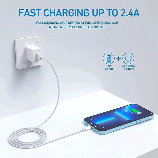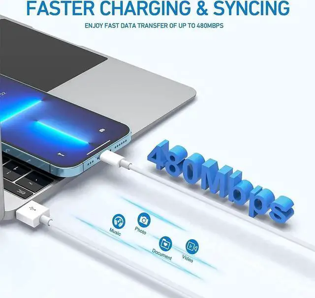 Lightning cable: Premium quality four-core copper wire and smart chip improve charging and data transfer speed of your iphone charger. This makes charging faster and more stable and you can accept up to 2.4A for fast charging and up to 480Mbps for fast data transfer.