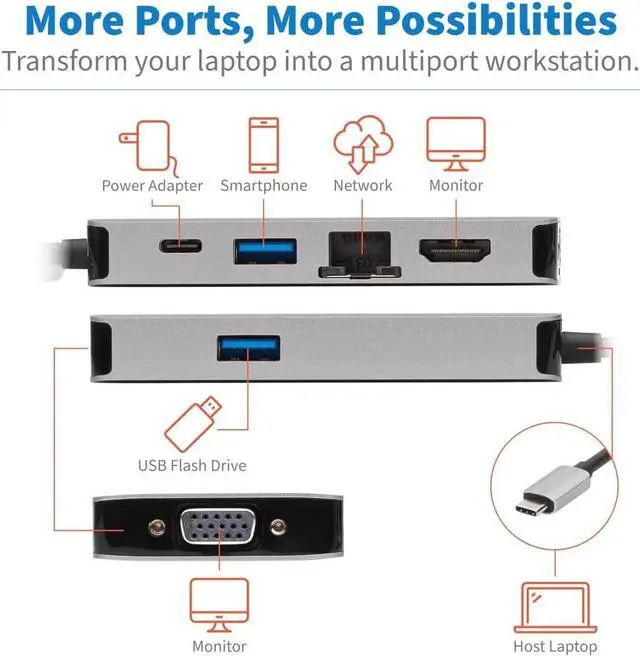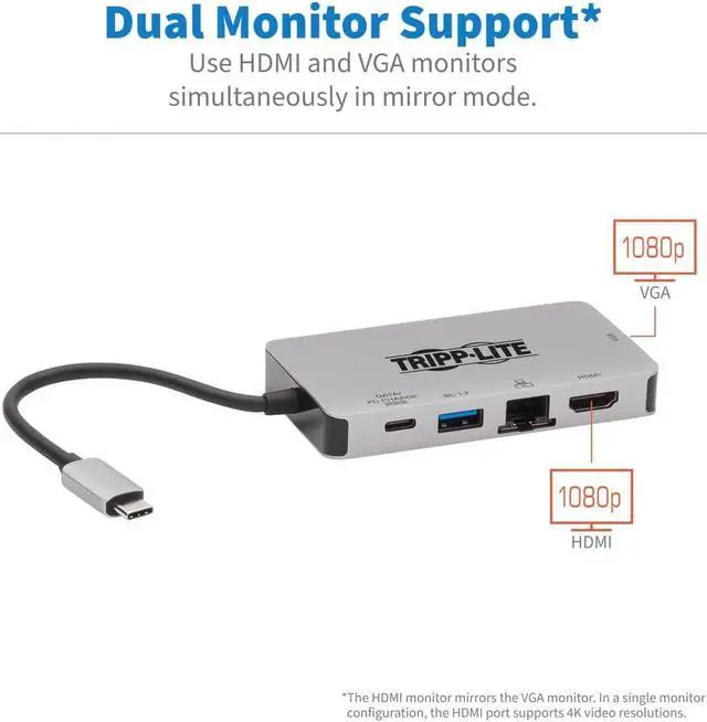 This USB-C dock with PD Charging expands the potential of Windows laptop, Chromebook, smartphone or PCs USB-C or Thunderbolt 3 port. Its ideal for transmitting 4K or 1080p video and digital audio to a large display, adding a thumb drive and other USB peripherals, powering and charging a PD Charging-compliant mobile device, and connecting to a Gigabit Ethernet networkall at the same time.
