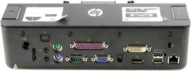 This Port Replicator / Docking station allows for permanent connection of peripheral devices at your desk with no need to keep plugging / unplugging cables each time you want to work. Taking your HP Compaq laptop from the office to home or moving it from one room to another will no longer require disconnecting and reconnecting several devices. The docking station replicates many of the connectors and ports from your laptop and routes the connectors to the back of the dock. Compatible With: HP Compaq EliteBook 8440p, 8460p*, 8470p, 8540p, 8560p*, 8440w, 8540w, 8560w**, 8570w**, 8740w, 8760w* HP Compaq ProBook 6360b, 6440b, 6445b, 6450b, 6460b*, 6465b*, 6470b*, 6475b*, 6540b, 6545b, 6550b, 6555b, 6560b*, 6565b*, 6570b* *No USB 3.0 Support **No USB 3.0 Support, Model Number: HSTNN-I11X, HSTNN-111X HP Compaq P/Ns: 575324-001 [90w], VB041AA [90w], VB042AV [90w], VB041ET [90w], Assy No: 575324-001 SPS No: 581597-001 Onboard Ports: 1x 3.5mm Audio-in (Microphone / Line-in), 1x 3.5mm Audio-out (Headphones / Speakers), 2x PS/2 (Mouse & Keyboard), 1x Serial Port, 1x Parallel Port, 1x VGA, 3x USB 2.0, 1x USB 2.0+, 1x Ethernet / LAN, 1x Integrated (Kensington) cable lock slot, 1x HP Docking Station Cable Lock slot Please note: AC Adapter is not included. You will need a 90W adapter in order to power both the laptop and the docking station.