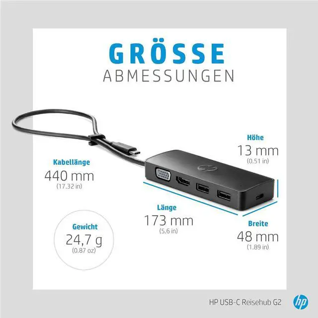 TECHNICAL SPECIFICATIONS Weight and measurements Height 17mm Width 107mm Weight 70g Depth 41mm Ports and Interfaces Number of USB 3.2 Gen 1 (3.1 Gen 1) Type-C ports 1 Number of USB 2.0 ports two VGA (D-Sub) Port Quantity 1 Number of HDMI ports 1 host interface USB 3.2 Gen 1 (3.1 Gen 1) Type-C microphone input jack Nope connectivity technology wired Connection ethernet Nope Performance product color Black Country of origin China integrated reading card Nope Technical details Harmonization System (SA) Code 84733020 Packaging package height 37mm package width 155mm package weight 160g Package depth 95mm