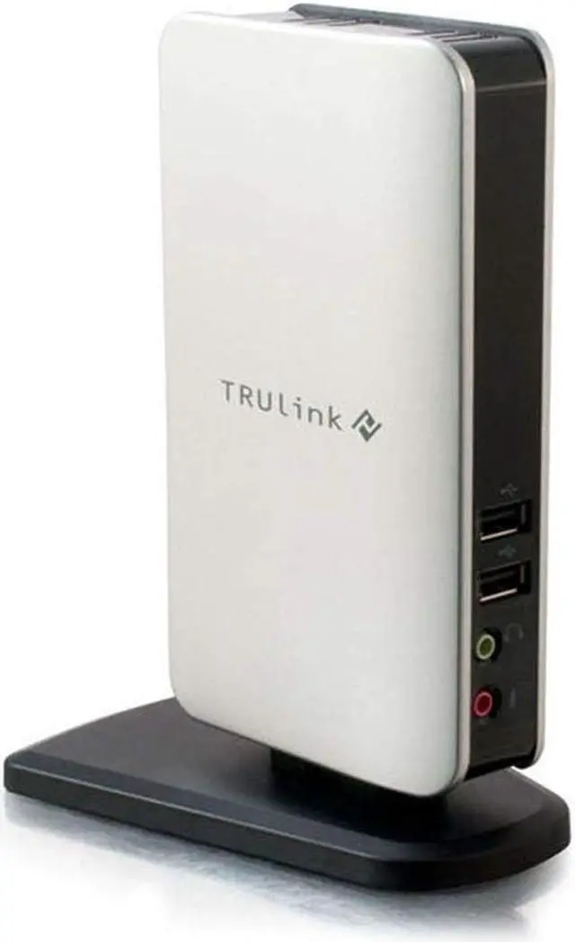 Come and go as you please without the hassle of repeatedly connecting and reconnecting devices to your computer. The Trulink Desktop Docking Station adds convenience and flexibility to any office environment -whether at home or at work. With universal connectivity capability, it acts as a central hub for nearly any model of laptop, netbook or desktop using peripherals. This makes it a valuable addition particularly in settings when disparate brands of equipment are used or computer equipment is swapped out frequently. A single USB connection controls the analog/digital video, four additional USB ports, Ethernet connection and audio input/output. After installing the included drivers, usage is plug-and-play with no computer reset or added docking/undocking procedures required. Because it uses USB 2.0 speeds, performance is smooth and reliable with no lag in audio/video even when multiple peripherals are connected. Video resolutions up to 1900x1200 are supported through the DVI-I connection which easily converts to VGA using the included adapter. Output: One USB Type B Female Input: One DVI-I Female, One 3.5mm Audio Input, One 3.5mm Audio Output, Four USB 2.0 Ports, One Ethernet Port (10/100 Base-T)