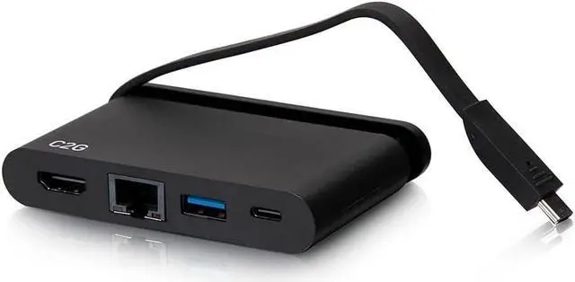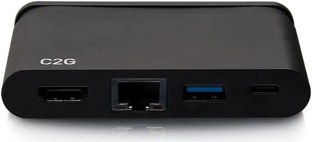 This USB-C 4-in-1 Compact Dock with HDMI, USB-A, Ethernet and USB-C Power Delivery connects to USB-C or Thunderbolt 3 enabled laptops and is perfect for contributing to a desktop solution # making it ideal for inside reps that need essential connectivity while in the office or when working from home. This USB-C compact dock supports up to 100W of power delivery to charge and power mobile laptops when using the USB-C power adapter that is included with the laptop. The maximum power capacity depends on how much power the connected adapter can supply. The right amount of power is necessary to keep the laptop battery charged, for all connected devices to function, and for the dock to provide that connectivity. This compact dock includes an HDMI port with a resolution up to 4K (3840 x 2160) at 30Hz for high definition audio/video. The USB-A and USB-C data ports support SuperSpeed USB 5Gbps data transfers # allowing up to 32GB of data to be downloaded in under a minute. The Ethernet port allows for reliable internet connectivity with file transfer speeds up to 1000Mbps. Optimize performance by connecting displays designed for 4K 30Hz signals and USB devices designed for 5Gbps transfer speeds. PORTS 4K HDMI: Connect to a 4K display via the HDMI port. USB-A: Connect storage devices and transfer data up to 5Gbps through the USB-A port. This port supports BC 1.2 for enhanced mobile device charging. Gigabit Ethernet: Connect to local network for network and internet access. USB-C Data and PD: Transfer data up to 5Gbps from a storage device and power a laptop or tablet with up to 100W power delivery.