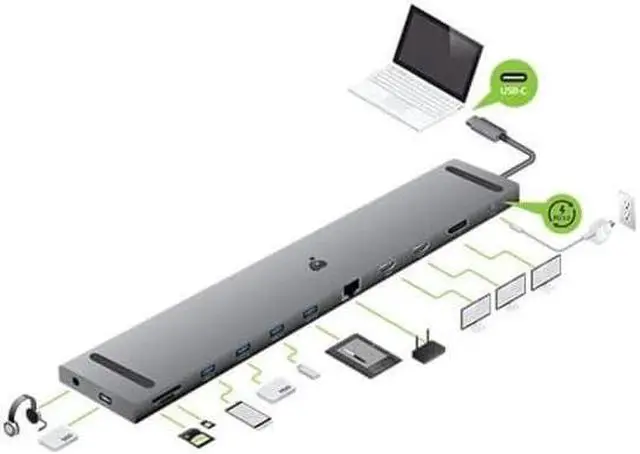 This versatile dock is designed to fit seamlessly into any workstation or setup. Dock and add up to seven must-have devices to your USB-C laptop with the Dock Pro USB-C Triple HD Dock. The Dock Pro is the perfect companion to turn your MacBook, Windows laptop or Chromebook into a complete multi-monitor workstation.