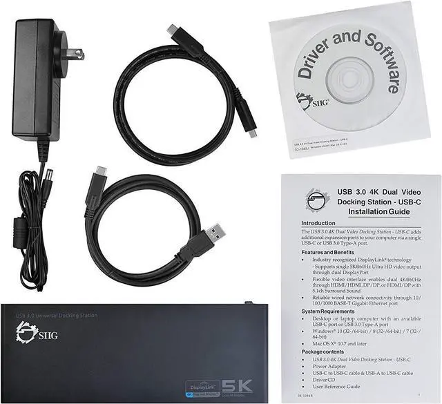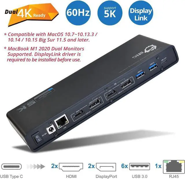 SIIGs USB-C 4K Dual Video Docking Station expands a single USB port from your Macbook (Require the PC/LAptop to have a high end CPU with Intel I5 3.0G or above), Surface, HP and more to multi-function outputs with dual video, USB Type-A, Gigabit Ethernet and stereo audio out/ Mic in connections. !!!Note: Linux is not supported