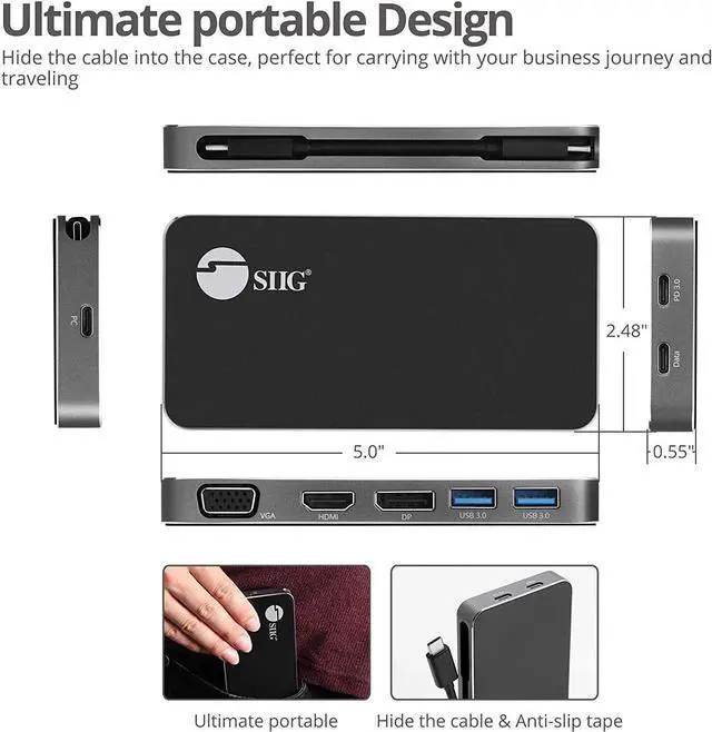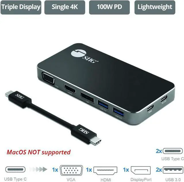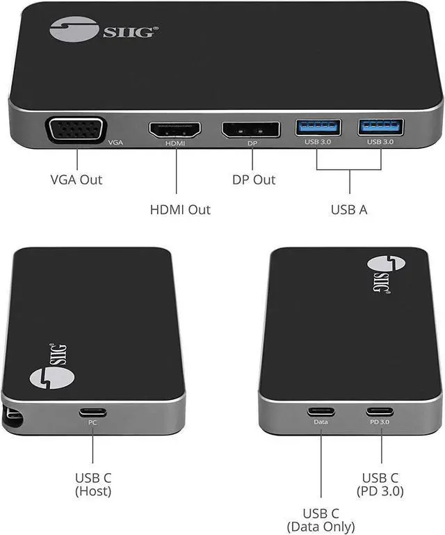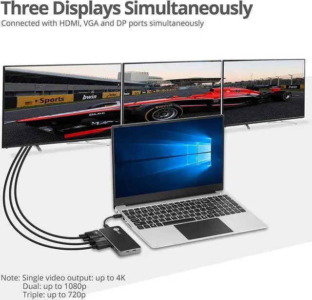 Note: The docking station's video output will work properly only when the USB-C port transmits DisplayPort signal