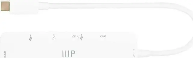 The Monoprice 5in1 USBC to 4K HDMI Display and USB Hub Adapter allows you to greatly expand the capabilities of your USB TypeC or Thunderbolt 3 host computer. On systems that support DisplayPort 1.4 Alt Mode, you can add a 4K@60Hz HDMI display to expand your system's desktop area or to mirror the main host screen. For systems that support DP 1.2 Alt Mode, it supports up to 4K@30Hz resolution.
