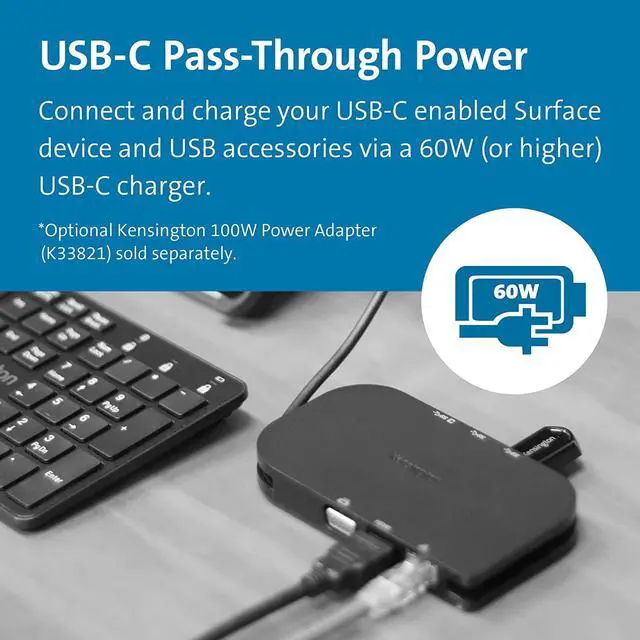 USB-C Pass-Through Power: Support 60W of Surface charging