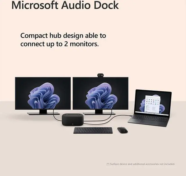 The Microsoft Audio Dock reduce cord clutter, simplify your desktop, and upgrade your audio for meetings and music. All in one speakerphone connects your laptop to monitors and accessories.