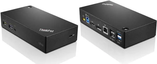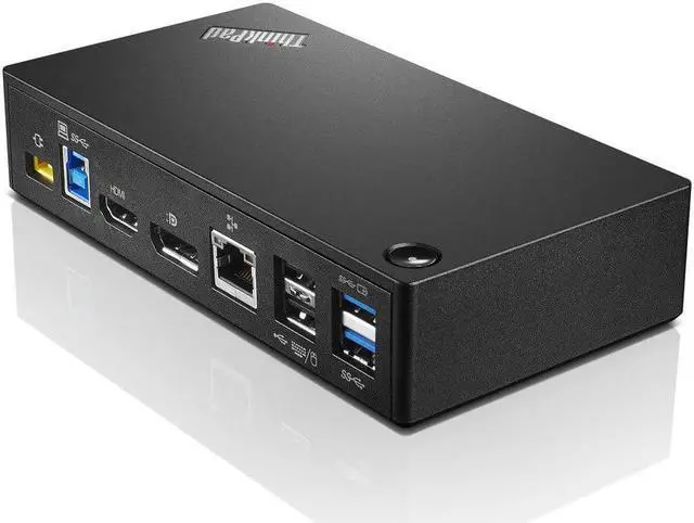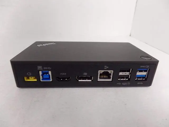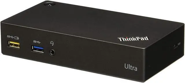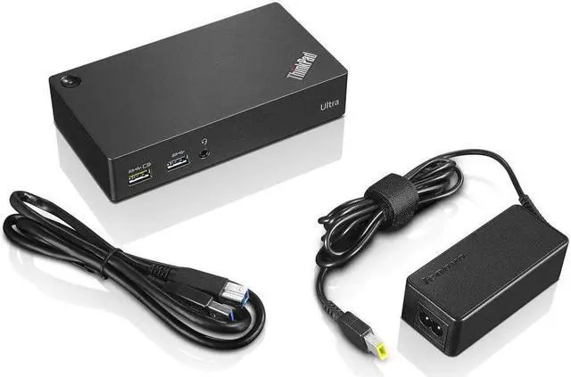 Dock requires included AC power to operate (does not power or charge attached laptop). COMPATIBLE WITH the following models: Edge Series: E120, E125, E130, E135, E145, E220s, E320, E325, E330, E335, E420, E420s, E425, E430, E430c, E431, E435, E440, E445, E450, E455, E460, E465, E470, E520, E525, E530, E530c, E531, E535, E540, E545, E550c, E555, E560, E560p, E565, E570, S230u, S430, S431, S440, S531, S540; L Series: L330, L420, L421, L430, L440, L450, L460, L520, L540, L560; T Series: T420, T420s, T430, T430u, T430s, T431s, T440, T440p, T440s, T450, T450p, T450s, T460, T460p, T460s, T520, T530, T560; W Series: W520, W530, W540, W541, W550s, P40, P50, P50s, P70; X Series: X120e, X121e, X130e, X131e, X140e, X220, X230, X230s, X240, X240s, 11e, X1, X1 Carbon, X1 Carbon 3rd, x260, x1 Carbon 4th, X1 Yoga, Yoga 11e 3rd Gen; Yoga Series: S1, S3, S5. Also compatible with the Helix 1, Helix 2, the Ideapad MIIX 700-12ISK, ThinkPad 13 Tablet, ThinkPad 10 2nd Gen Tablet, ThinkPad 8 Tablet. The ThinkPad USB 3.0 Ultra Dock is an universal USB docking solution that not only delivers a premium display experience (up to 4k2k resolution via DP port), but also provides quick and easy connection to all the workspace peripherals you use every day. Simply plug in a single USB 3.0 cable into your Lenovo PC for instant access to up to two external monitors, USB ports, Gigabit Ethernet, headphones/speakers, USB printers, scanners, keyboard, mouse and so on for daily use. The Dock can also charge your mobile devices via two USB always power on ports. Dock requires included AC power to operate.