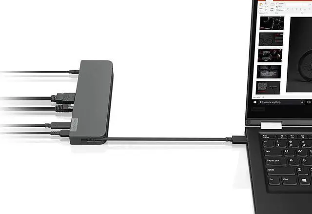 Unlock Your Potential with a Versatile Mini Dock; Lenovo recognizes the diversity of modern business computing needs, spanning different PC models and brands. To simplify this, the Lenovo USB-C Mini Dock offers compatibility not only with Lenovo notebooks but also with those from HP and Dell