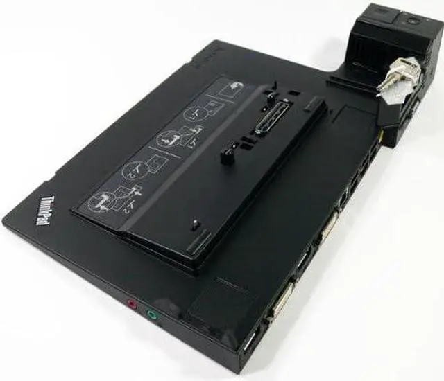 Lenovo Thinkpad Mini Dock Plus Series 3, 433810U docking station is ideal for notebook users who need easy access to the Internet/LAN, multiple USB devices, audio and video equipment, and robust key lock security. Includes: Left corner alignment for easy system attachment. Convenient eject button for one-step system removal. Six USB 2.0 ports, located on rear of unit. Five video ports: Up to three, of the five, video ports can be used simultaneously: ThinkPad systems with NVIDIA Optimus technology. Up to three monitors can be attached and ThinkPad display is enabled (ThinkPad display is active). ThinkPad systems with integrated graphics, or other discrete graphics: Up to two monitors can be attached and the ThinkPad display is disabled (ThinkPad display is blank). VGA analog monitor supporting 1920x1200 resolution. Two Single-Link DVI-D digital monitor supporting 1920x1200 resolution. Single-Link DVI-D port does not support attachment of a DVI-to-VGA monitor adapter. Two DisplayPort monitor supporting 2560x1600 resolution. Supports attachment (compatibility varies by ThinkPad system) of DisplayPort monitor cables. Using DisplayPort monitor cables reduces resolution to 1920x1200. Audio ports: Analog microphone in, headphone out. e-SATA storage connector. RJ-45 Ethernet port. Integrated key lock and cable lock slot physically secures the ThinkPad system and ThinkPad Mini Dock Plus 3. The cable lock and key lock operate separately. The separate key lock, on the side of the ThinkPad Mini Dock Plus Series 3, secures the ThinkPad to the ThinkPad Mini Dock Plus Series 3. Includes a ThinkPad 90W AC Power Adapter. Hardware compatibility - Supported ThinkPad Models: L420, L520, T400s, T410, T410i, T410s, T410si, T420, T420i, T420s, T420si, T510, T510i, X220; (ThinkPad T520 and T520i Dual Core Models only. Non-Dual Core Models Not Supported). Thinkpad L412 and L512 are partially supported - Dock's eSATA and audio ports are inactive, ThinkPad eSATA and audio ports are active.