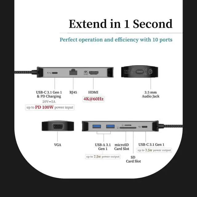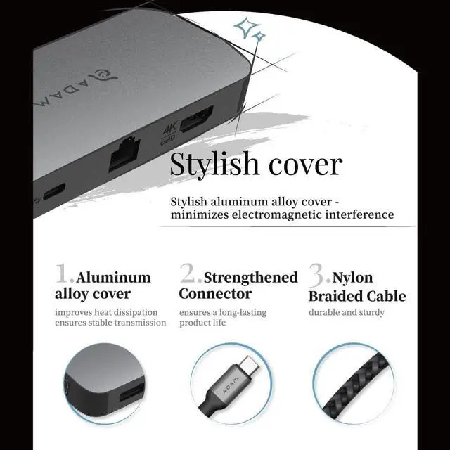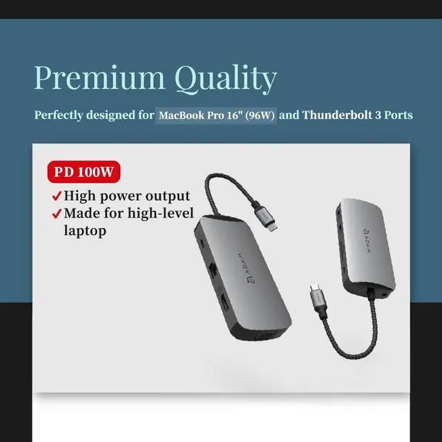 - Applied double USB-C ports, one for fast charging of laptop through PD sapping up to 100W and one for transfer flash drive data