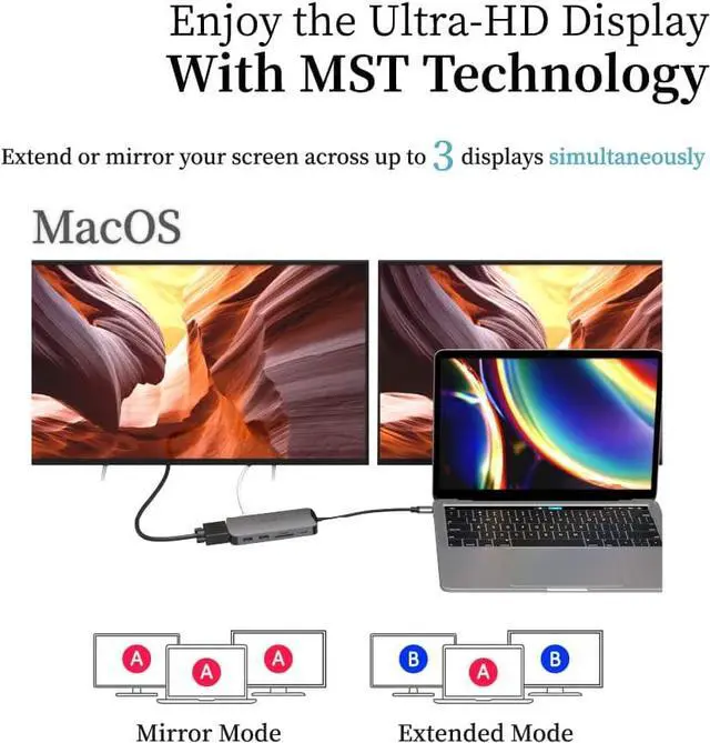- Support MST function to extend / mirror screen up to 2 monitors