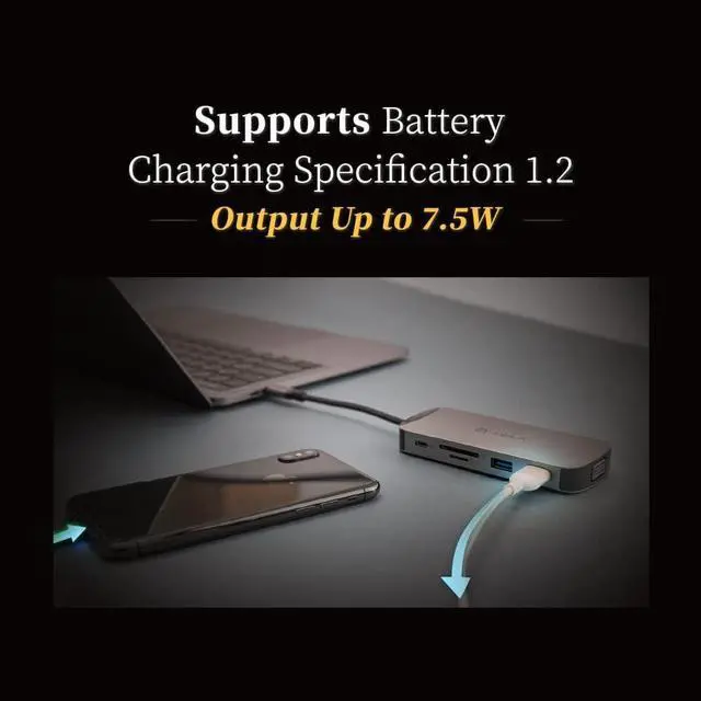- All USB-C and USB-A ports are compliant with BC 1.2 protocol, providing up to 7.5W of charging power for connected devices