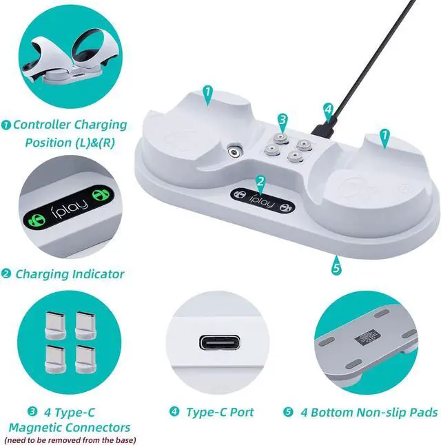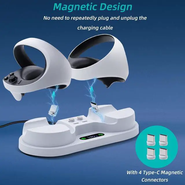 Magnetic Connector: The Magnetic Charging Dock for PS VR2 Controller features a magnetic connector that ensures a secure and stable connection between the dock and your controller, allowing for easy and reliable charging.
