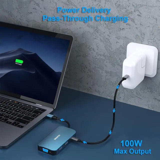 • Instant Expansion: Add 2 * HDMI port, 1*VGA port, 3 * USB 3.0 ports, 1 * 100W Power Delivery Ports, 3.5mm AUX slot to your USB-C laptop all from a single USB-C port. Tuck this lightweight gadget into your bag or pocket to do a business presentation with your laptop and projector, or extend your desktop screen to a monitor or TV;