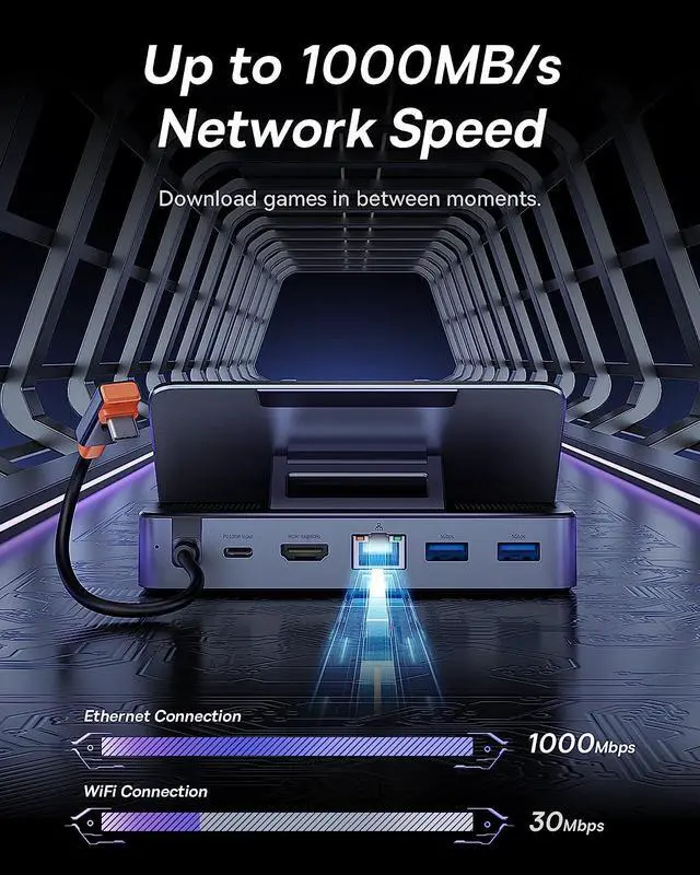 Gigabit Ethernet: The RJ45 port provides stable and high-speed Ethernet with network speeds up to 1000MB/s, ensuring efficient work and play.No need to worry about lagging internet speed at all.