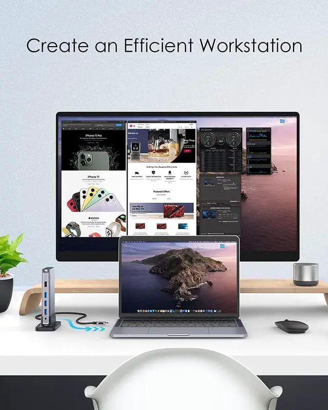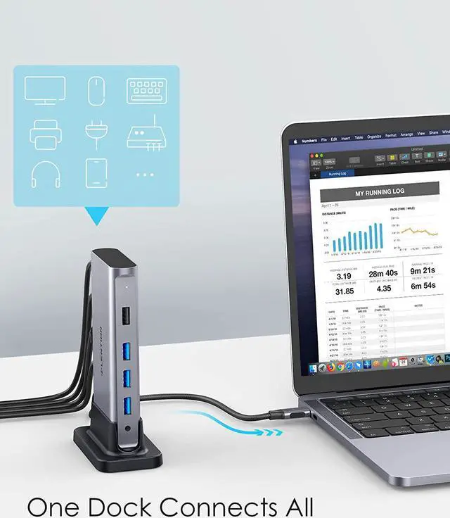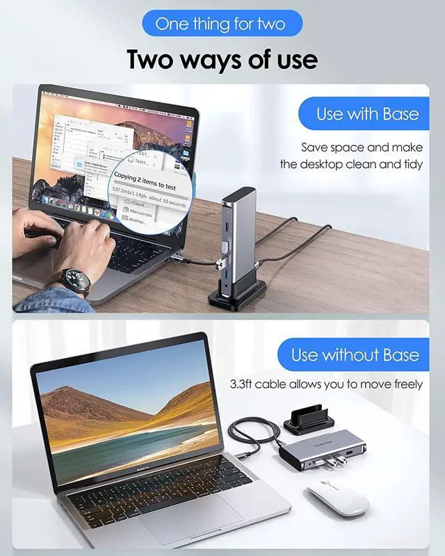 • Ingenious Detachable Design - Made from aluminum with a Mac-style finish, CB-D53 USB C Docking Station includes a removable stand for vertical or horizontal orientation. It has a 3.3ft cable that allows you to move freely. A perfect solution for laptop docking station for home, office, and travel use