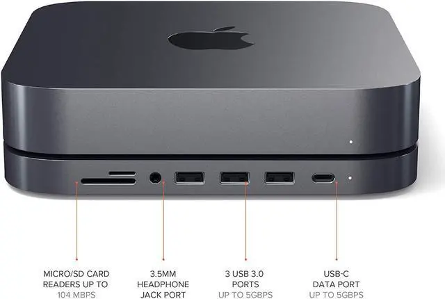 Designed to feel like a natural extension of your Mac Mini with an elegant, brushed finish and matching space gray aluminum alloy.