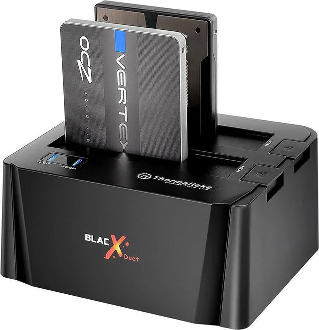 Thermaltake BlacX Duet HDD Docking Station Key Features: USB 3.0 SuperSpeed Interface Handy Drive Removal Aesthetic, Compact Design Plug & Play Installation SATA & System Compatibility