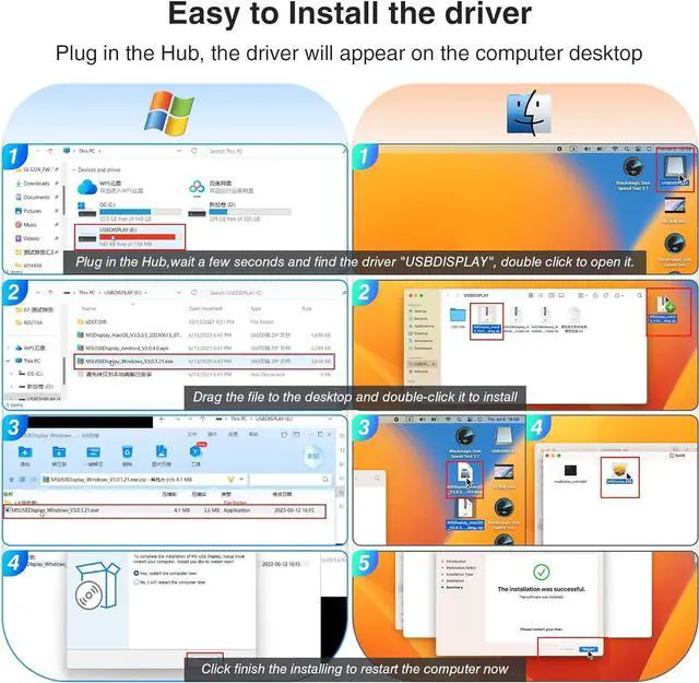• 4K UHD Video and Dual HDMI Output: Mac docking station dual monitor with 2 HDMI port allows you to mirror or extend vivid 4K Ultra high definition display of MacBook to an HDTV, monitor,projector,etc. When the docking station connect 2 displays simultaneously, only HDMI1 is 4K monitor, the HDMI2 port supports up to 1080P@60HZ. Note: 1080P HDMI needs to install driver for working well.
