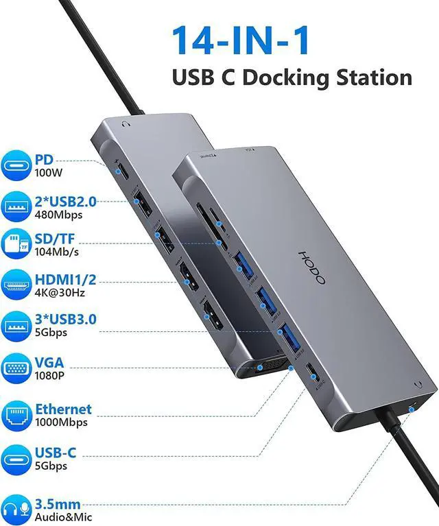 HODO USB C Docking Station Top sales of HODO ! Universal USB C Hub Multiport What makes our products unique? Are our products high quality? Technical DetailsAdditional Information Feedback Website (Online)Store (Offline) 8-in-1 USB C Laptop Docking Station Dual 4K HDMI Monitor for Windows Compatibility List(NOT ALL) USB 2.0 Hub with Fast Data Transfer Quadruple Modes for Windows OS Multi Displays for Windows & Mac OS PD 3.0 (Power Delivery) Technology