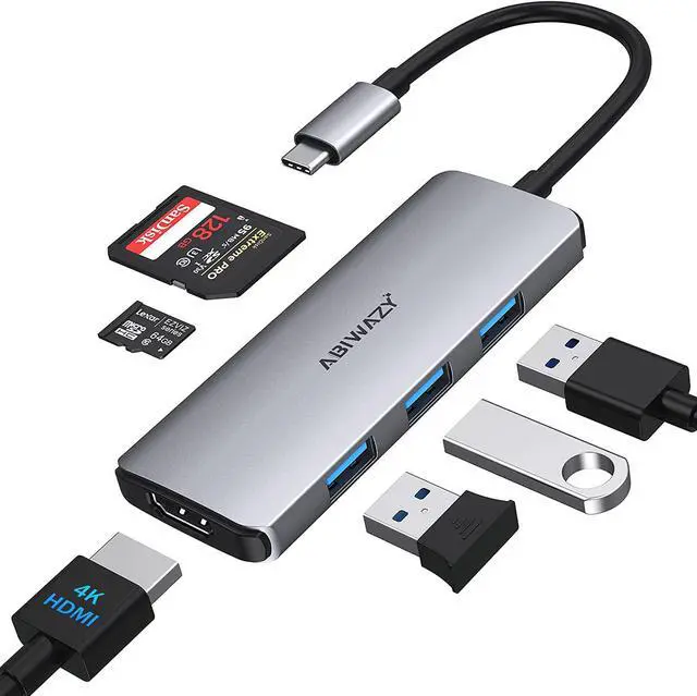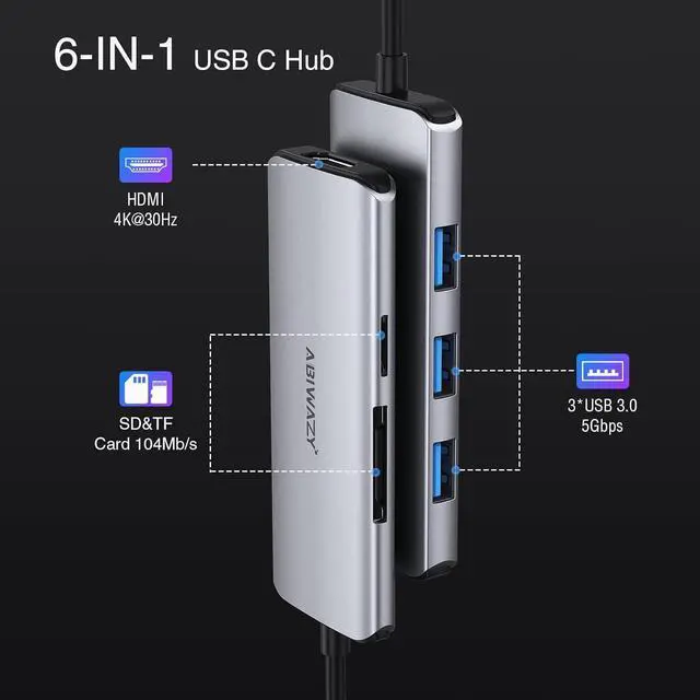 • Media Multi-functional USB C Hub: ABIWAZY 6-IN-1 USB C Dock comes with a 4K HDMI video output port, SD&TF card readers, and 3 USB 3.0 ports. All ubc-hub ports can work simultaneously, small yet mighty. Expanding more ports to connect more,Providing more convenience for your business work and edaily entertainment.