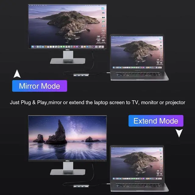 Mirror Mode:AA,the screen of monitor and laptop are same,as well as the resolution,can be up to 4K
