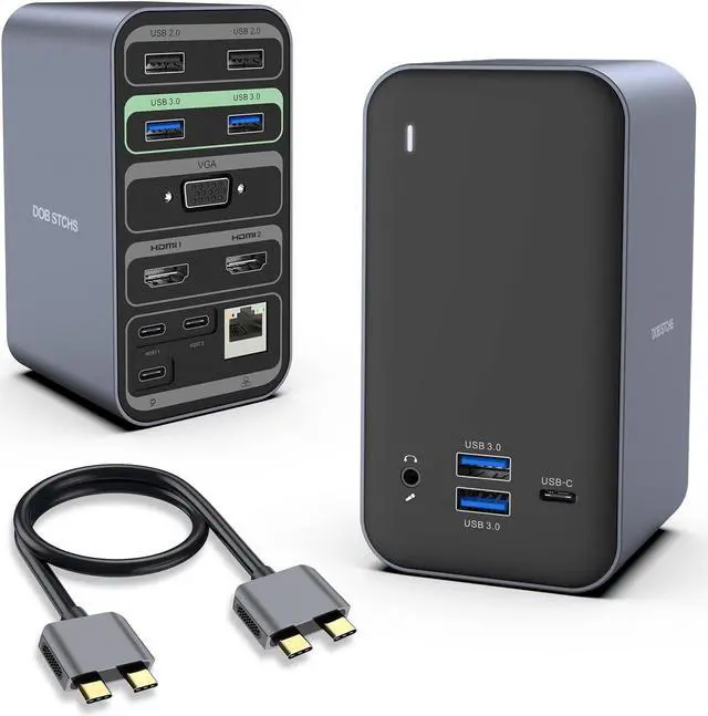 4.0 out of 5 starsDOB SECHS for MacBook Pro/Air Dock, USB C Docking Station for Laptop Dual Monitor, 13-in-2 USB-C Laptop Docking Station with 2 4K HDMI, USB 3.0, VGA, PD 3.0, RJ45 Ethernet, 3.5mm Audio Plug Play, 87W