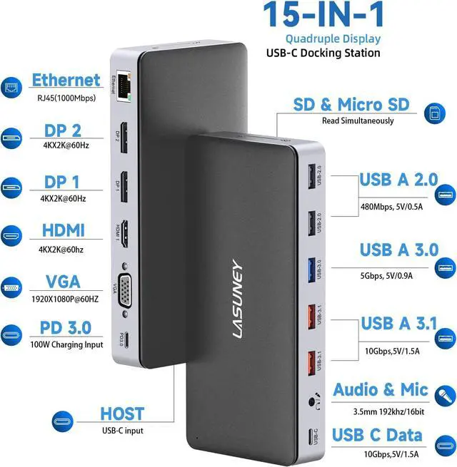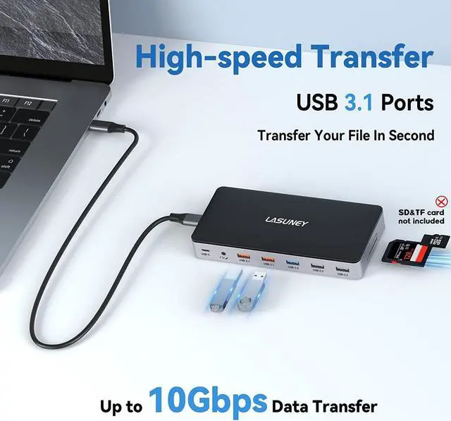 Our dock is supporting 2 cards reading simultaneously and there are also USB 3.1 and USB-C data ports that up to 10GBPS rates, allowing you to transfer the data more quickly. (Note: SD&TF cards are not included in the package.)