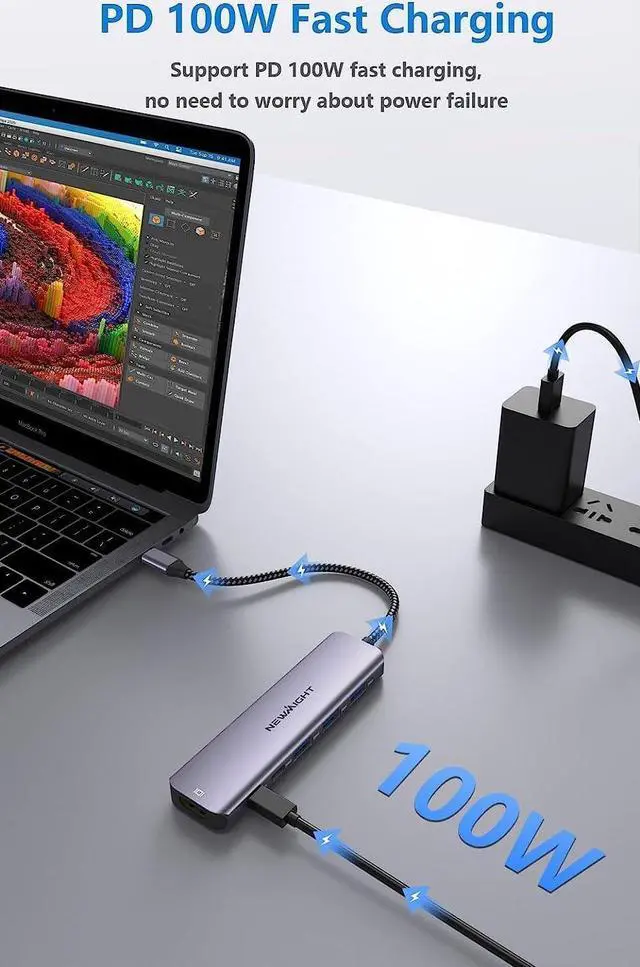 1. About charging:The PD charging port is for charging only, not for data transfer. For abetter experience, when you use the usb c adapter hub, please chargevia the original PD charger. Please plug in your laptop's power adapterbefore connecting multiple monitors. If your laptop's c-port does notsupport the PD protocol, charging will not be possible.