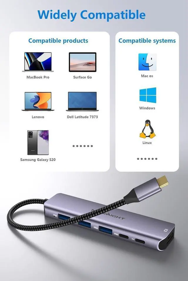 The USB C hub is lightweight designed and the integration design of the interface maximally reduced the size of the hub,does not occupy desktop space.