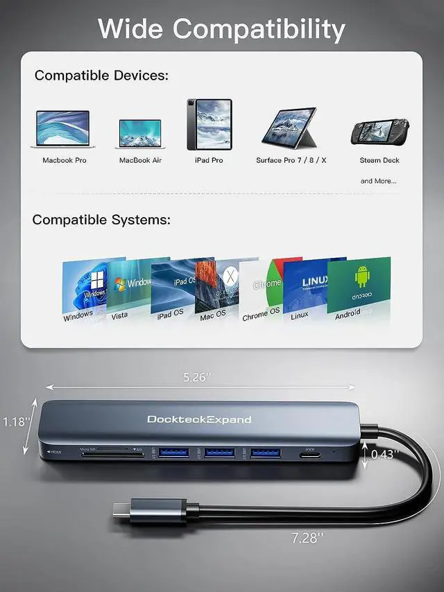 Memory Card ReaderUSB C Hub Multiport Adapter Docking StationUSB C to USB A Adapter DockteckExpand 5 in 1 USB C Docking Station Plug and Play, No Software, Drivers required 100W PD Fast Charging Port Wide Compatibility USB C to USB 3.0 HUB Ideal for Play Game 4K@30Hz USB C Hub HDMI Slim and Portable Compatible Devices (INCOMPLETE