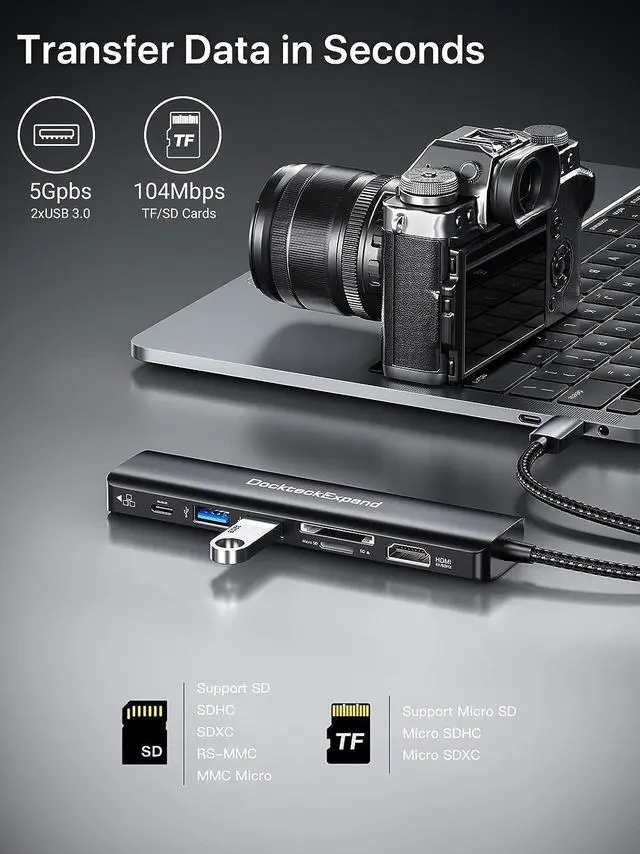 Memory Card ReaderUSB C Hub Multiport Adapter Docking StationUSB C to USB A Adapter DockteckExpand 5 in 1 USB C Docking Station Plug and Play, No Software, Drivers required 100W PD Fast Charging Port Wide Compatibility USB C to USB 3.0 HUB Ideal for Play Game 4K@30Hz USB C Hub HDMI Slim and Portable Compatible Devices (INCOMPLETE